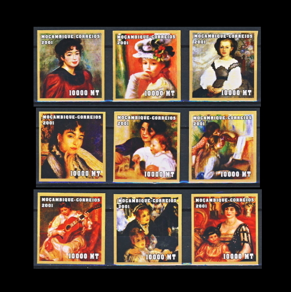 ■モザンビーク切手 2001年 絵画 / ルノワール 9種完 無目打