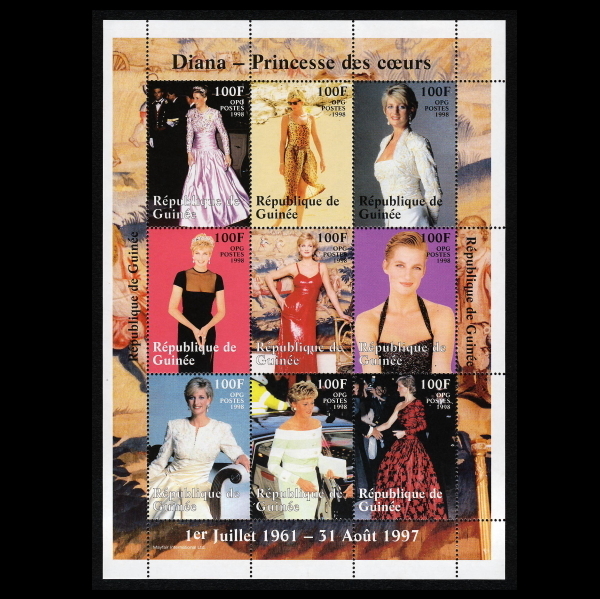 ■ギニア切手 1998年 ダイアナ妃 9種シート