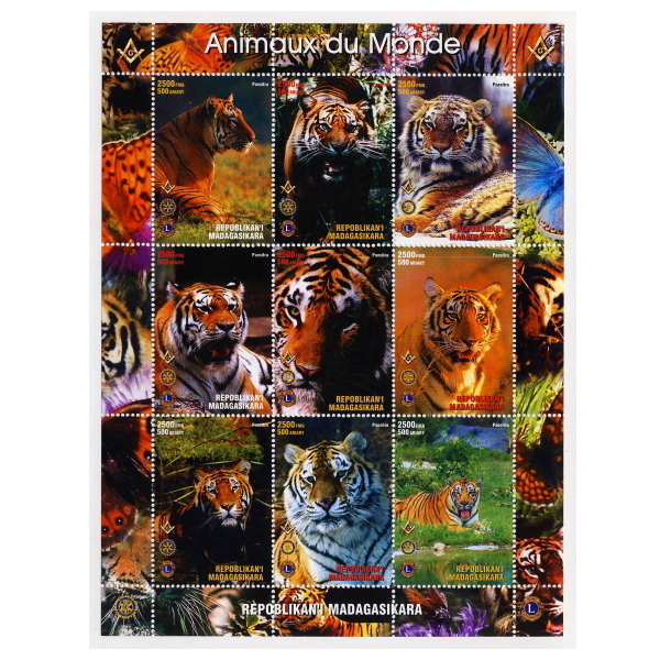 ■マダガスカル切手 虎 / トラ / タイガー 9種シート