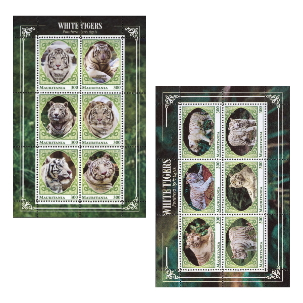 ■モーリタニア切手 2018年 白虎 / ホワイトタイガー 6種シート2枚