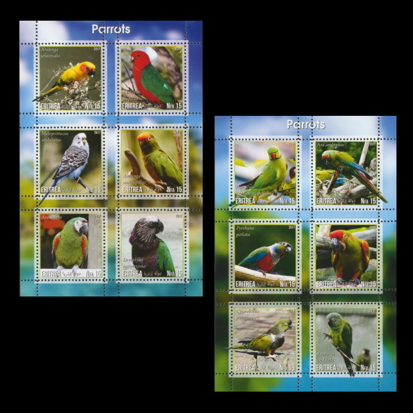 ■エリトリア切手 2017年 インコ / オウム 6種シート2枚