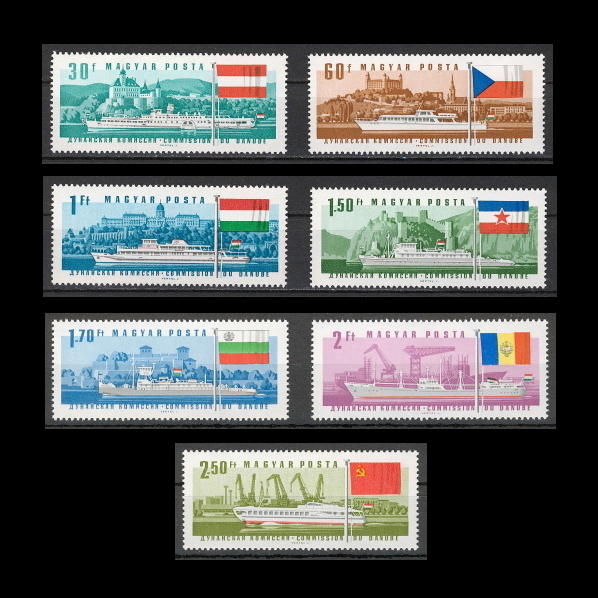 ■ハンガリー切手 1967年 景観 / ドナウ川と各国船 7種完