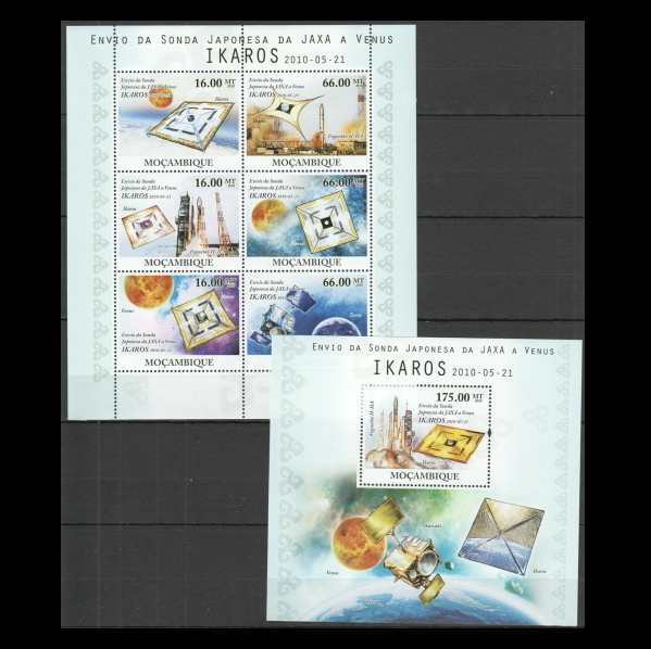 ■モザンビーク切手 2010年 日本の宇宙開発 / イカロス・IKAROS / 小型ソーラー電力セイル / JAXA シート+6種シート