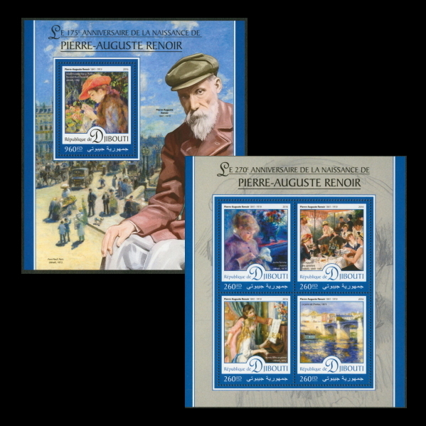 ■ジブチ切手 2016年 ルノワール 175/270周年 シート+4種シート