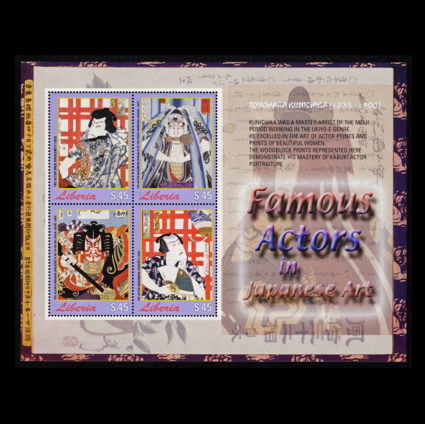 ■リベリア切手 浮世絵 / 歌舞伎 豊原国周 4種シート