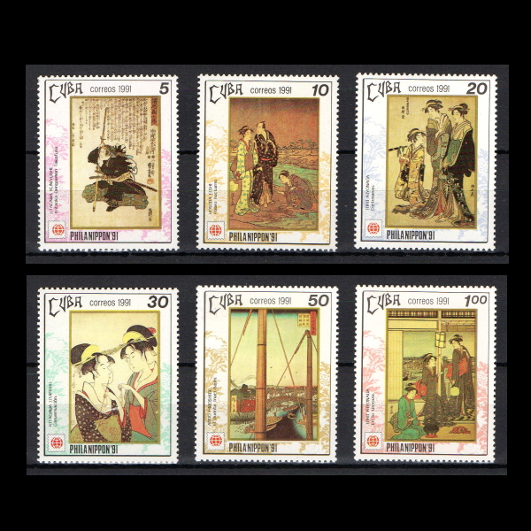 ■キューバ切手 1991年 浮世絵 / 喜多川歌麿他 日本国際切手展 6種完