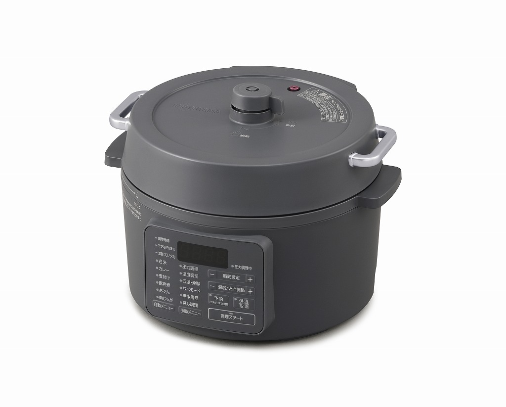 【関連キーワード】(本商品の説明ではありません)電気圧力鍋 3L 2~3人用 グレー 炊飯容量 4合 最高圧力 70kPa 調理容量 2.0L 満水容量 3.0L 製品寸法 幅30×奥行28.8×高さ22.4 付属品 蒸しプレート レシピブック IRIS OHYAMA