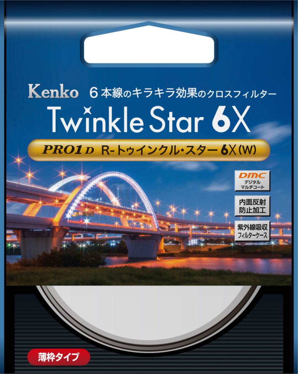 「PRO1D R-トゥインクル・スター6X(W)」は夜景やイルミネーションなどの強い点光源をほどよい長さの6本線クロスでキラキラ輝かせます。光の線が長く出すぎないのが特長です。光をもっとキラキラに、幻想的に輝かせます。