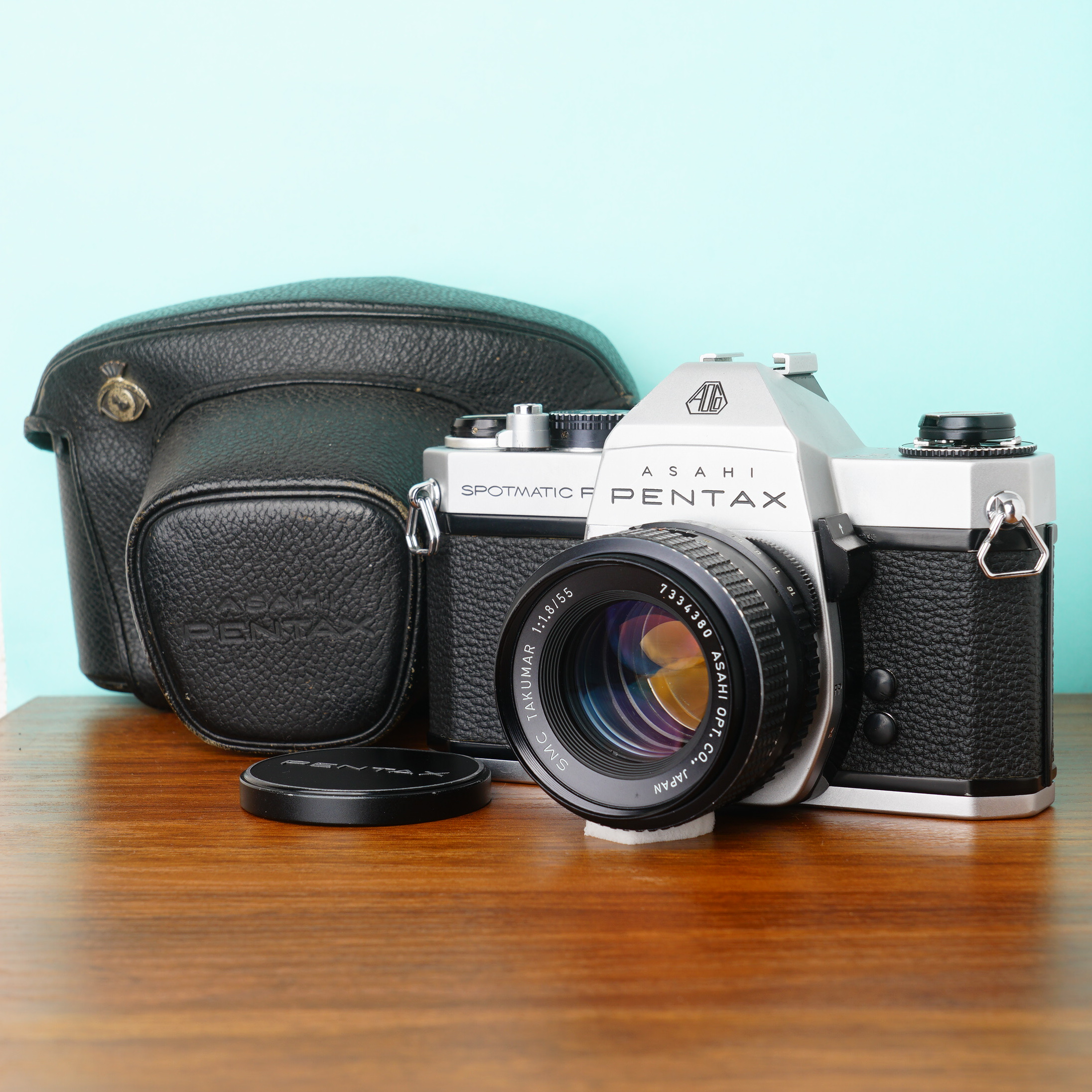 *商品に興味を持っていただきありがとうございます*-----------------------------1973年発売全世界で400万台以上売れたといわれるペンタックスSPの後継機です。開放測光に対応し、絞りを調節してもファインダーが暗くならずに露出が測れるように改良されました。[レンズ SMC TAKUMAR 55mm f1.8]ノスタルジックな色味でふんわりとした柔らかなボケ感が素敵です。 青色と紫色の二色に輝く美しいコーティングにより発色がよく、逆光耐性も向上しています。マウント:M42-----------------------------シャッター・巻き上げ・露出計 すべて動作する『完動品』です◎●シャッター全速度変化しています。●タイマー作動します。●フィルムカウンター作動します。●経年なりの使用感はございますが、スレ等少なく良好です。●ファインダー内にわずかなチリの混入や黒い線がありますが、カビ曇りなく良好です。移りには影響しない箇所ですのでご安心ください。●フォーカスリング/絞りリングの動作良好です。●絞り羽に油染みありません。●レンズ内部にわずかなチリの混入が見られますが良好です。●カビ曇り黄変はありません。※撮影には影響ありませんでした。◯付属品◯レンズキャップ(フロント)カメラケース◇レンズの清掃と絞りの油除去済みです。◇モルト(遮光材)は新品に交換済みです。◇ボディー・フィルム室・ファインダー内部の清掃済みです。※もしも初期不良がありましたら返品対応いたします。どうぞ安心してご購入ください。*質問などございましたらお気軽にコメント下さい。#フィルムカメラ#オールドレンズ