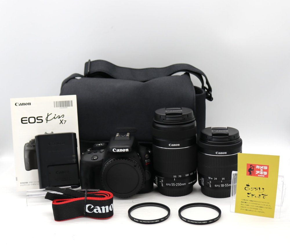 | 主な仕様 | 標準ズームレンズ EF-S18-55mm F3.5-5.6 IS STM、望遠ズームレンズ EF-S55-250mm F4-5.6 IS II同梱品:インターフェースケーブル、バッテリーパック LP-E12(撮影可能時間約1時間)、バッテリーチャージャー LC-E12、レンズフード無 |