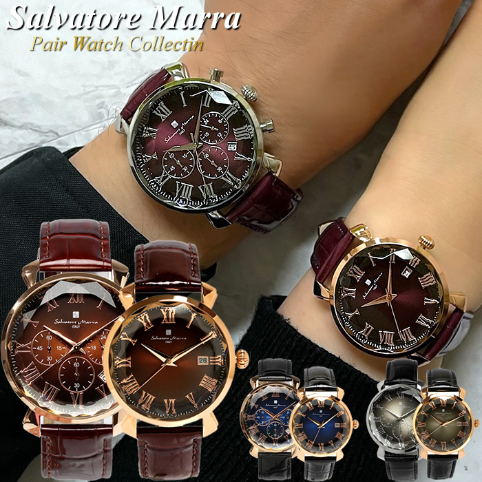 ペアウォッチ Salvatore Marra サルバトーレマーラ 腕時計 ペア時計 2本セット メンズ レディース 多面カットガラス 限定モデル 革ベルト ブランド