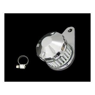 ブラケット付きのブリーザーフィルターです。主にクランクケースからでるブリーザーに使います。ブローバイから出るオイルを受け止めます。ブラケット付きなので、車両などに固定しやすいタイプです。フィルター単体は交換可能で、フィルター単体も販売してますよ。