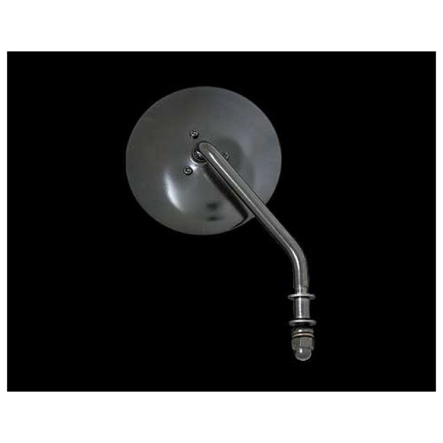 4インチのラウンドミラーです。裏面に段差が無い、スムースな形状が特徴です。純正は大きくてかっこ悪い、ハンドル周りをすっきりさせたい。そんな人にお勧めです。EVO以降の純正ハンドルマウントのウインカーも使用可能です。国産につける場合はミラークランプを使ってください。