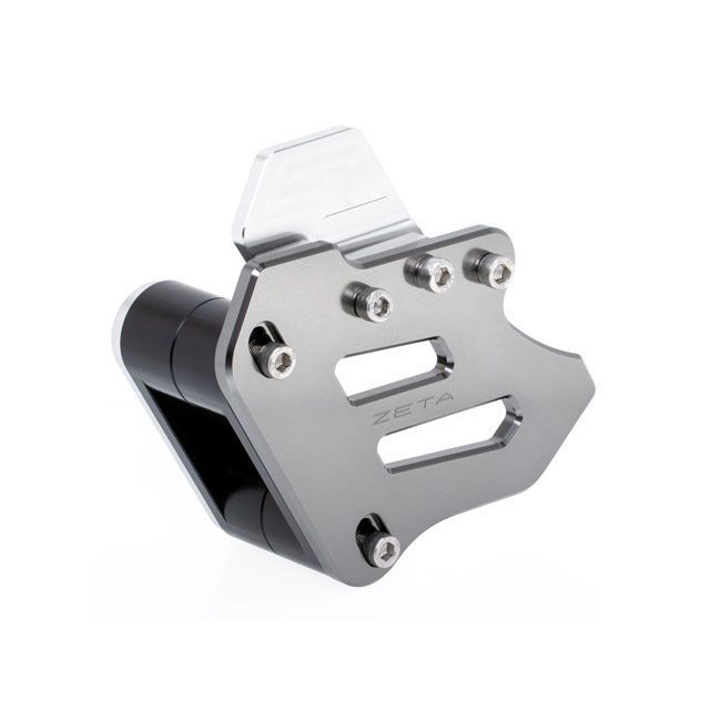チェーン脱落防止ガイドブロックを装備した6mm厚 高強度アルミ合金製チェーンガイド。
