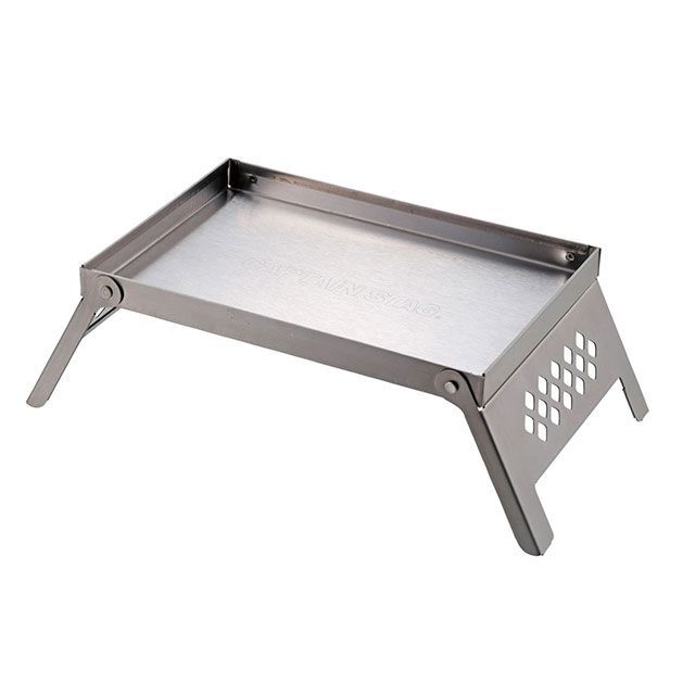 カマドスマートグリルB6型を載せるドダイ。薪の延長台としても使えます。脚を開くだけで簡単組立。ミニテーブルとしても使えます。コンパクトに収納でき、カマドスマートグリルB6型の収納バッグに一緒に入ります。丈夫で錆びにくいステンレス製。