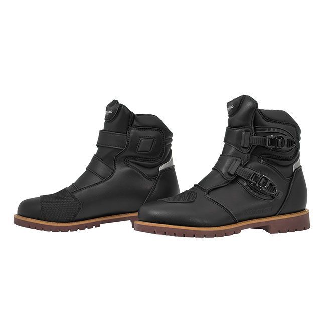 防水ライディングショートブーツ。2つのバックルでよりホールド力を向上させ、かかとには夜間視認性を高めるリフレクターを装備。シフトペダルパッチ、アンクルプロテクターパッドなどライディングのための機能が充実。