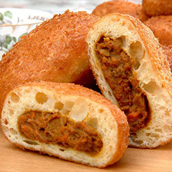 家庭のレンジでも焼ける業務用冷凍パン生地の通販です。大人気元祖横浜カレーパン!牛肉30%使用のジューシーなカレーに油を吸いにくいサクっと揚がる生地の最強タッグ!