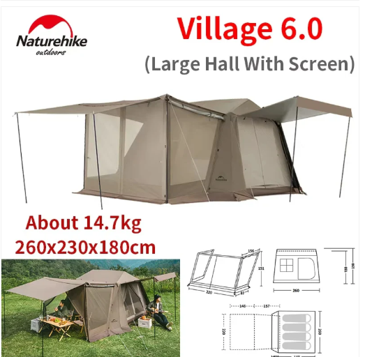 Naturehike 正規品 ネイチャーハイク Village 6.0 PLUS ワンタッチテント ロッジ型 2〜4人用 Naturehike ネイチャーハイク ビレッジ6.0