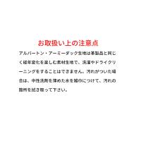 ・お取扱い上の注意点・アルバートン・アーミーダック生地は革製品と同じく経年変化を楽しむ素材生地で、洗濯やドライクリーニングをすることはできません。汚れがついた場合は、中性洗剤を薄めた水を雑巾につけて、汚れの箇所を拭き取って下さい。
