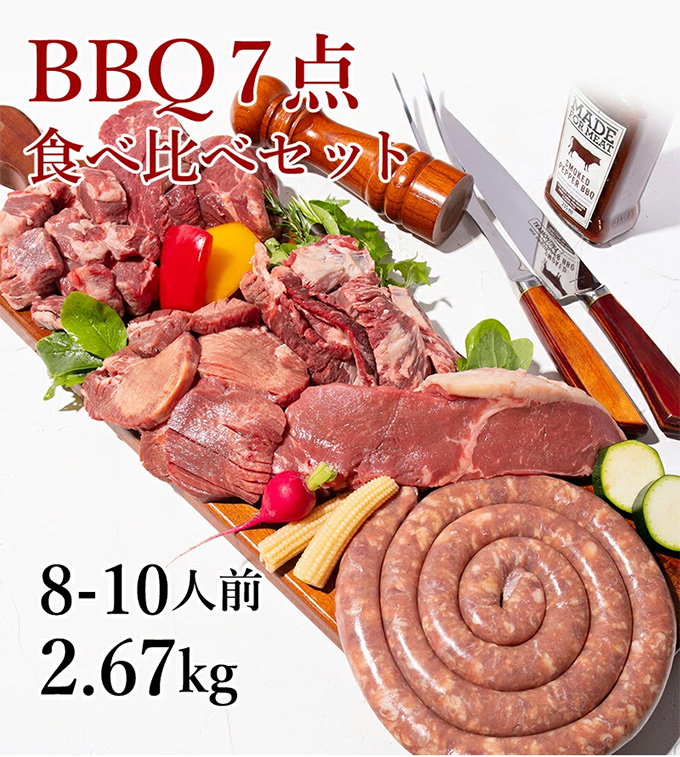 BBQ7点食べ比べセット 焼肉セット メガ盛り 肉 バーベキューセット バーベキュー 牛肉 ステーキ肉 BBQ 7点盛セット 2.67kg 8人前 - 10人前 爆買