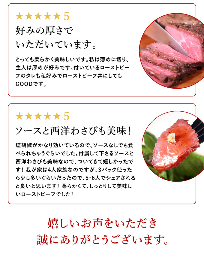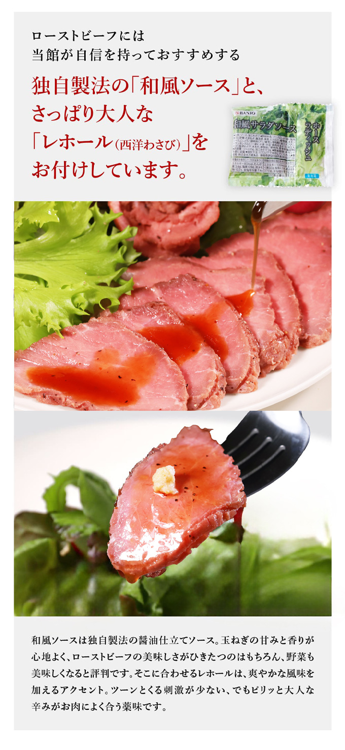 規格・内容:ローストビーフ150g×3個、ローストビーフソース2個×3