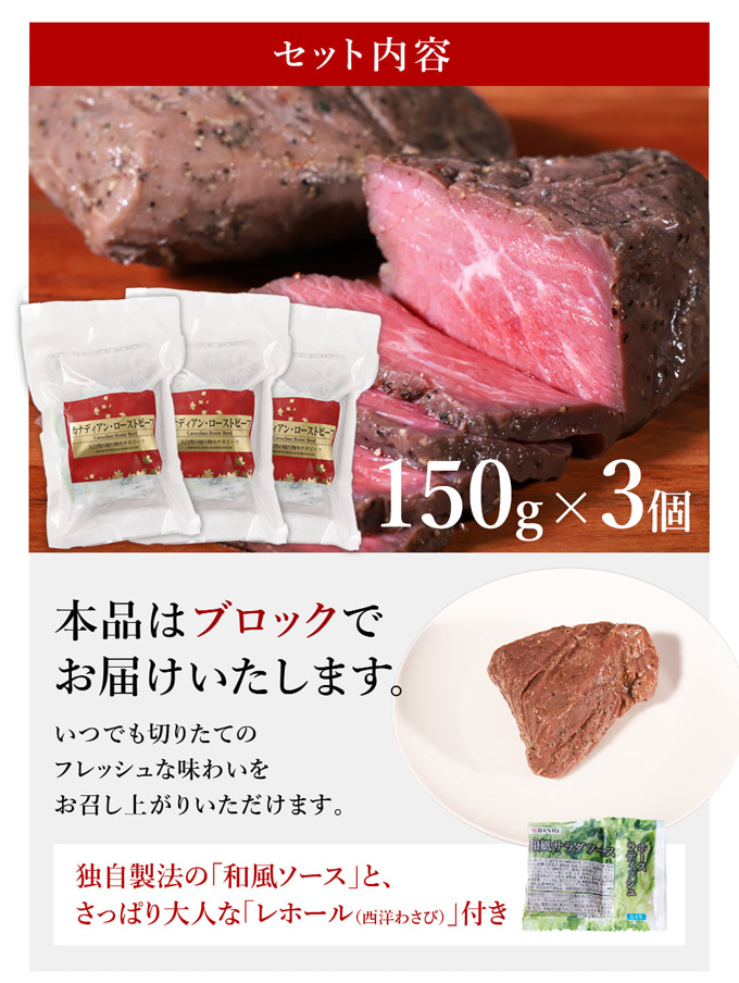 カナディアン・ローストビーフ 450g (150g×3個セット) 3〜5人前 肉 牛肉 訳アリ ギフト パーティー 贈り物 お肉 内祝 プレゼント 爆買