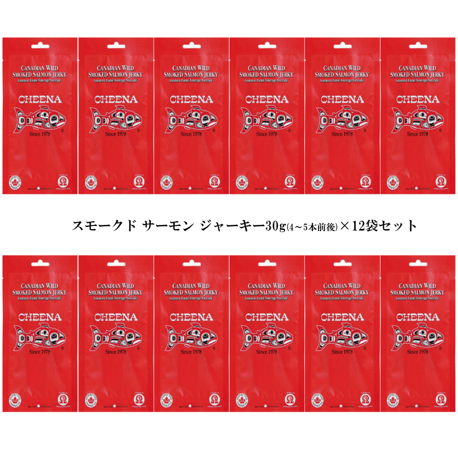 スモーク サーモン ジャーキー 30g ×12個 お得セット カナダ 鮭の燻製 最高級品が激安 3~4本入り 日本語表示シール 剥がし
