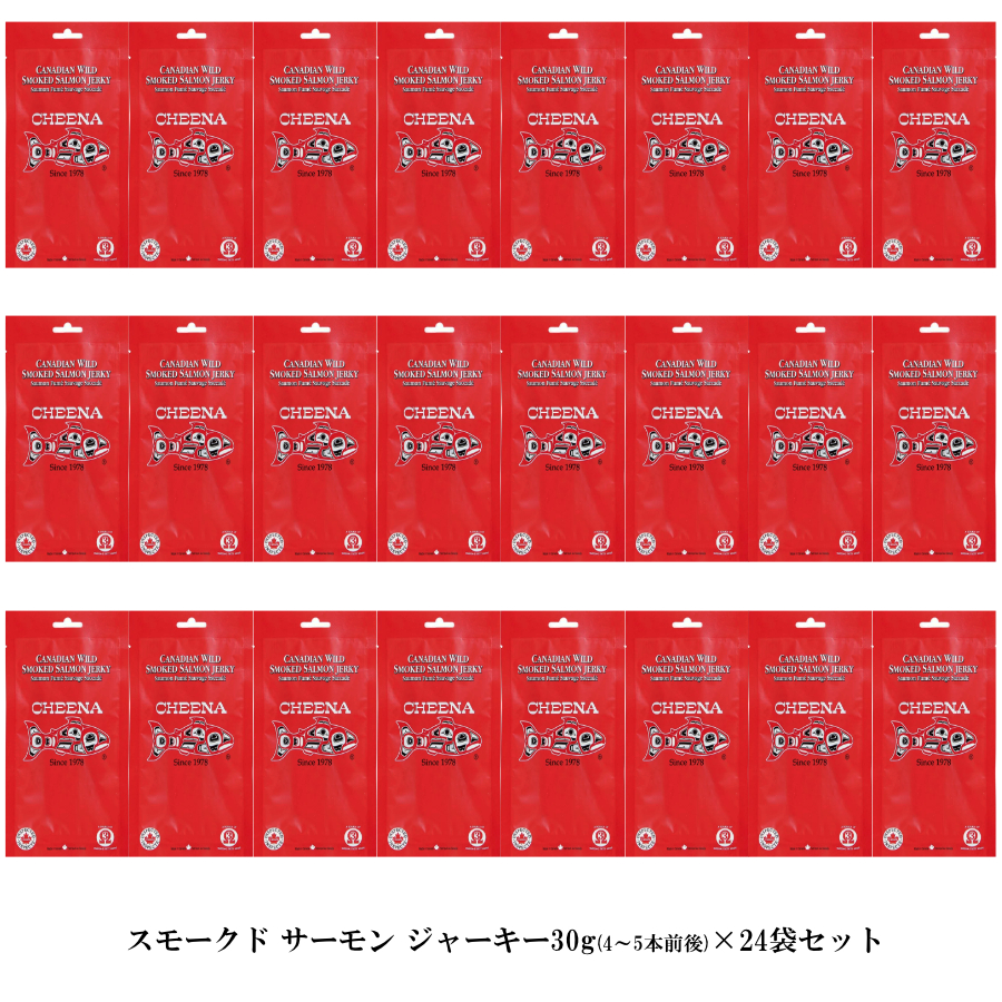 スモーク サーモン ジャーキー 30g ×24個 お得セット カナダ 鮭の燻製 最高級品が激安 3~4本入り 日本語表示シール 剥がし