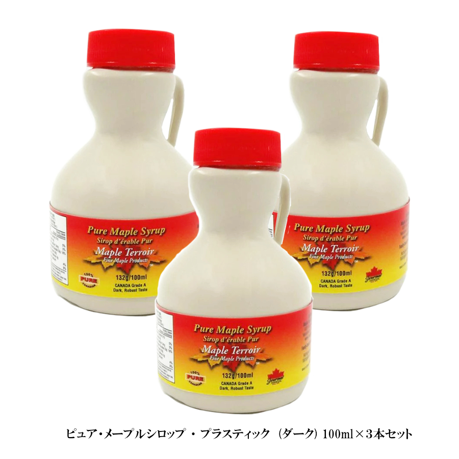 メープルシロップ 100ml ボトルタイプ ×3本セット カナダ土産 100% ピュアメイプル グレードA ダークロバストテイスト(旧ミディアム)