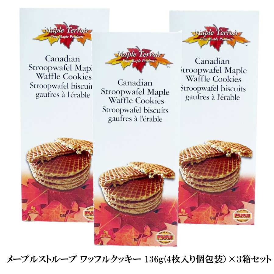 メープル ワッフル クッキー お土産用 メープル シロップ 個包装 4枚入り 136g ×3箱 海外仕様 メープルテルワー ブランド 激安 日本語シール剥がし