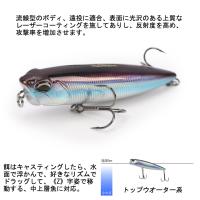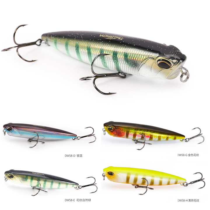 DW58はトップウォータールアー。強靭な肉体、魚鱗レーザー効果すべての側面から外光反映することができ、ワンダフル誘惑。