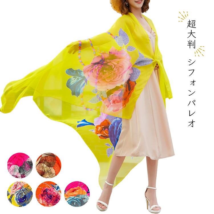 レディース パレオ 大判 ストール ラッシュガード スカーフ シフォンパレオ 大きいサイズ 夏 海 プール バカンス 体型カバー 日焼け防止 携帯 かわいい sj2737