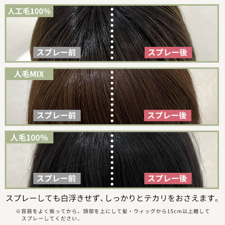 2.髪、ウィッグから15cm以上離してスプレーしてください。