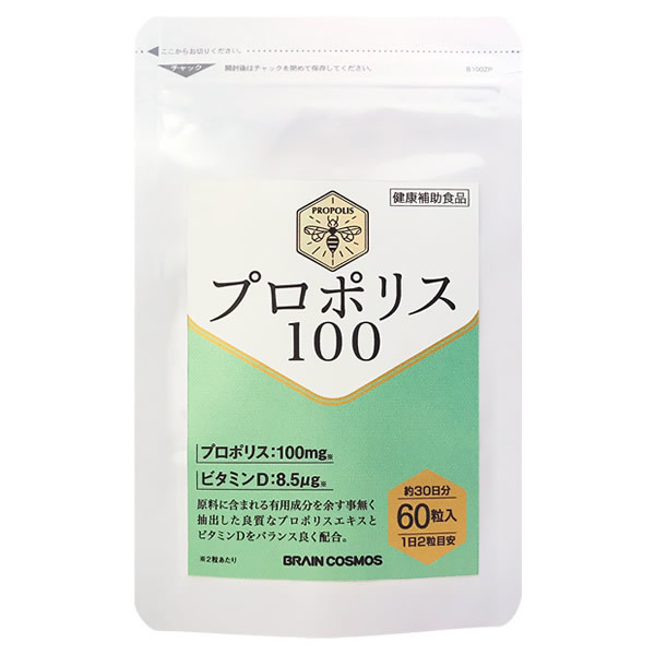 プロポリス100 60粒 (メール便送料無料) フラボノイド アルテビリンC p-クマル酸 ビタミンD ミツバチ 蜜蜂 はちみつ サプリメント プレゼント 母の日 父の日