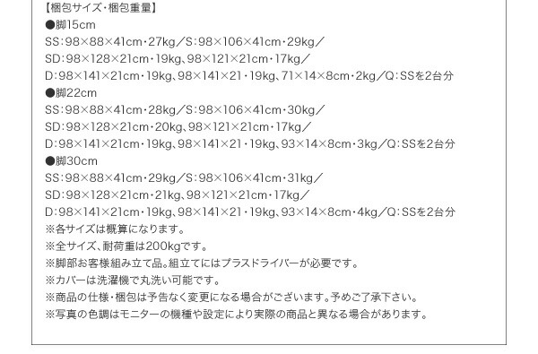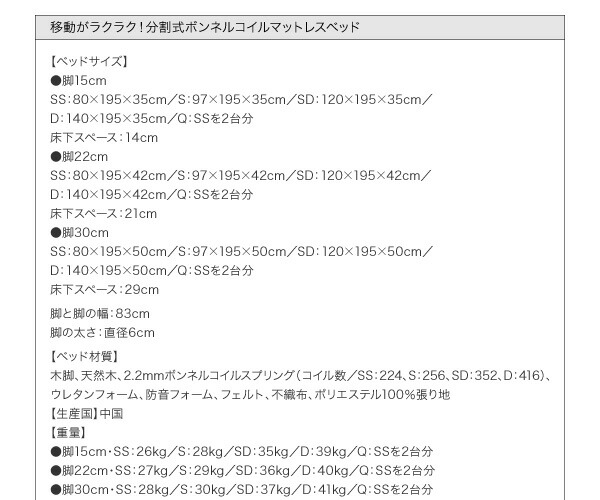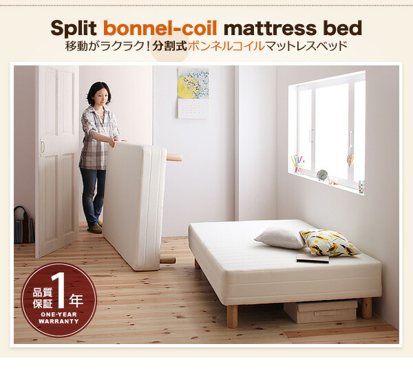 新・移動ラクラク 分割式マットレスベッド ボンネルコイルマットレスタイプ セミシングル 脚22cm