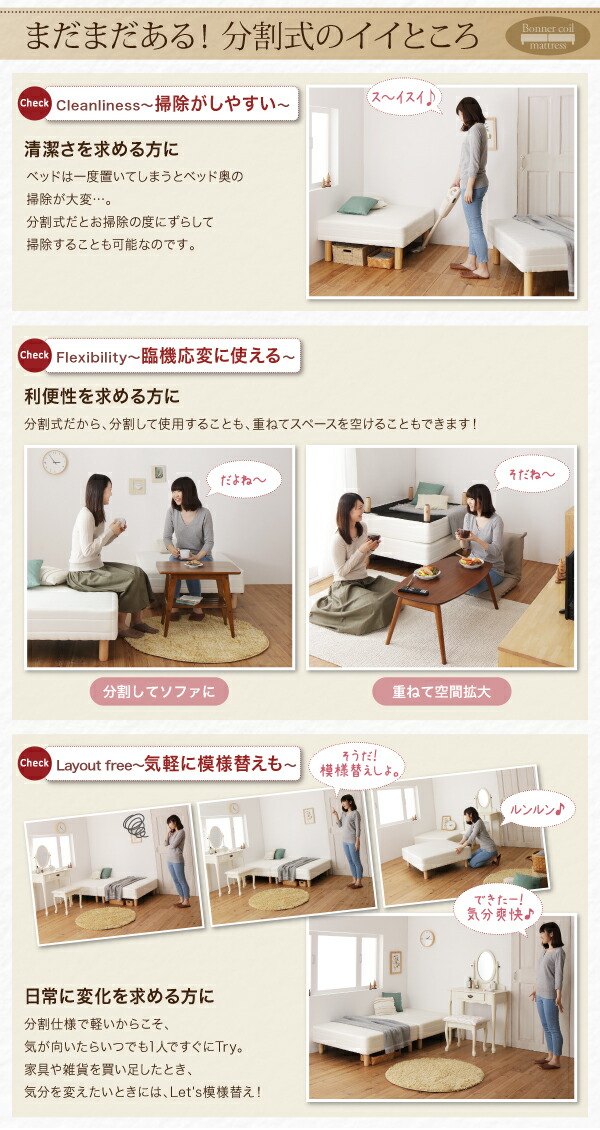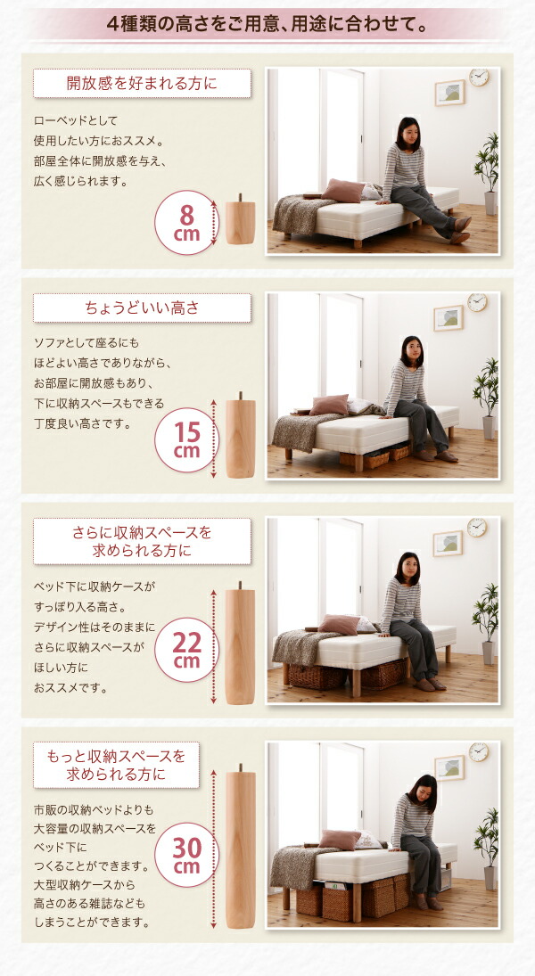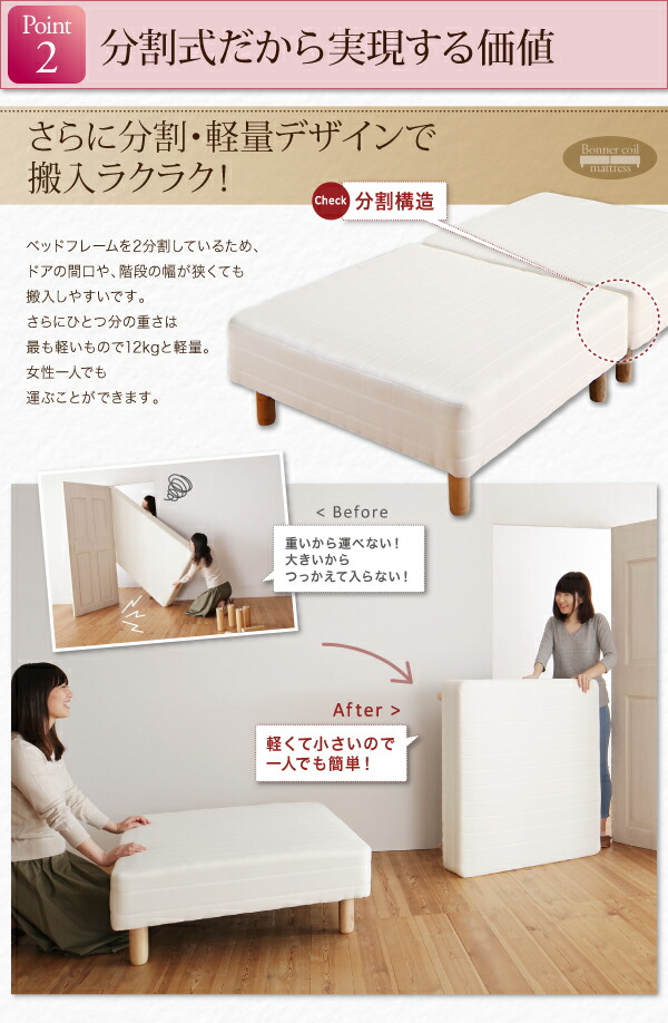 ショート丈分割式 脚付きマットレスベッド ボンネル お買い得ベッドパッド・シーツは別売り シングル ショート丈 脚8cm