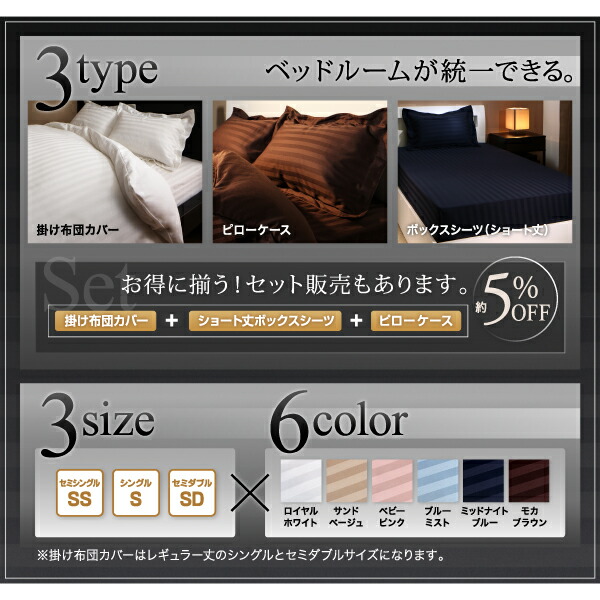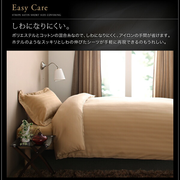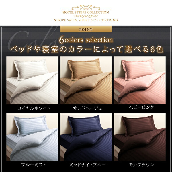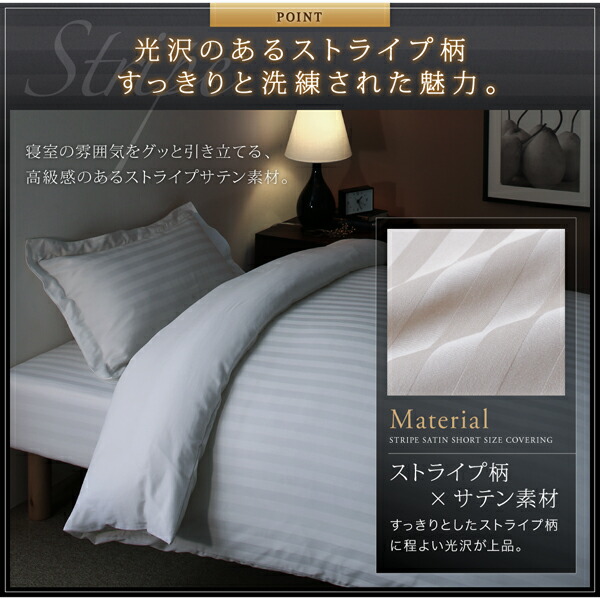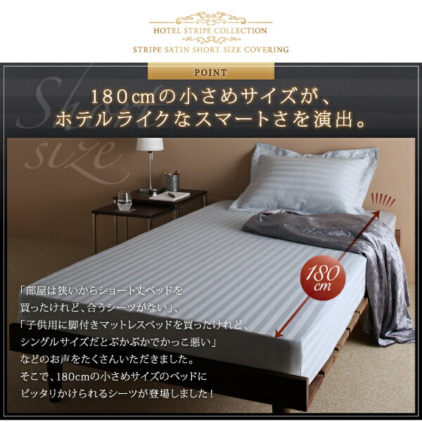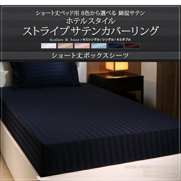 ショート丈ベッド用 6色から選べる 綿混サテンホテルスタイルストライプカバーリングベッド用ボックスシーツシングルショート丈