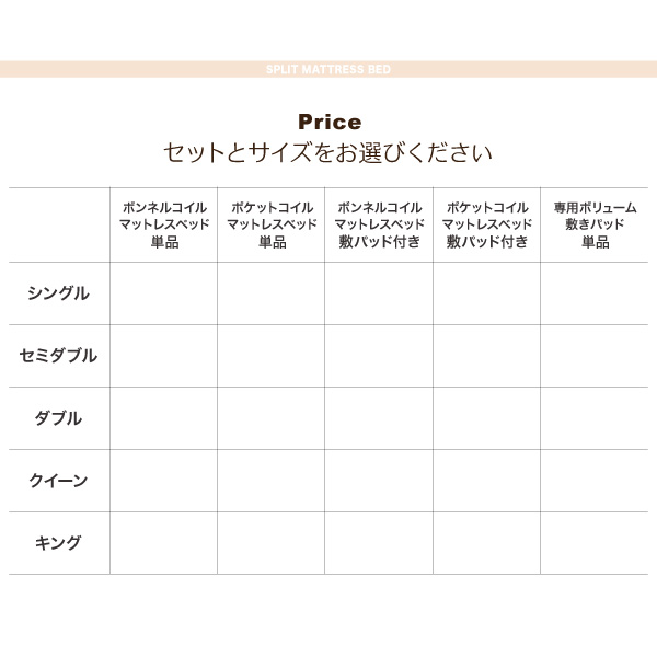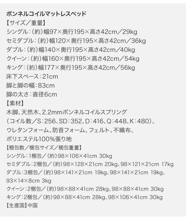 専用 敷きパッドが選べる 移動・搬入・掃除がらくらく 分割式脚付きマットレスベッド マットレスベッド ボンネルコイルマットレス 敷きパッドなし ダブル