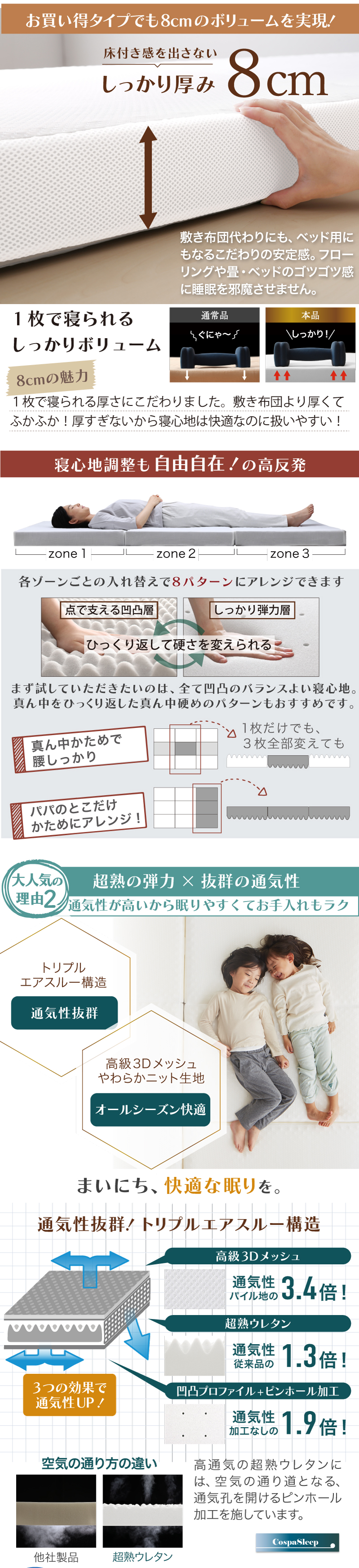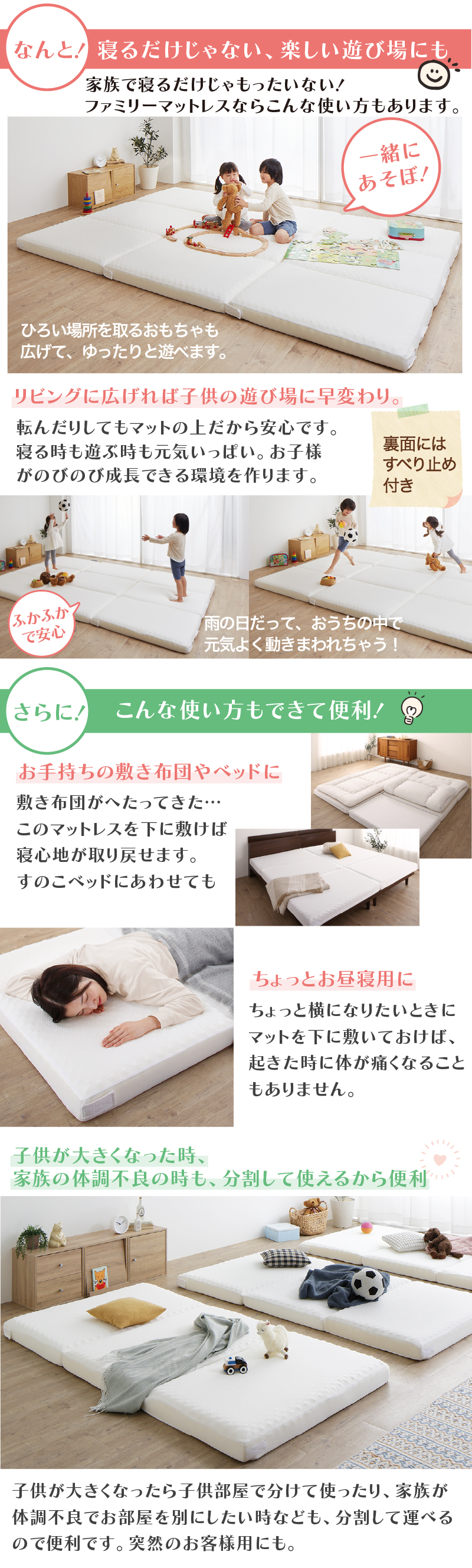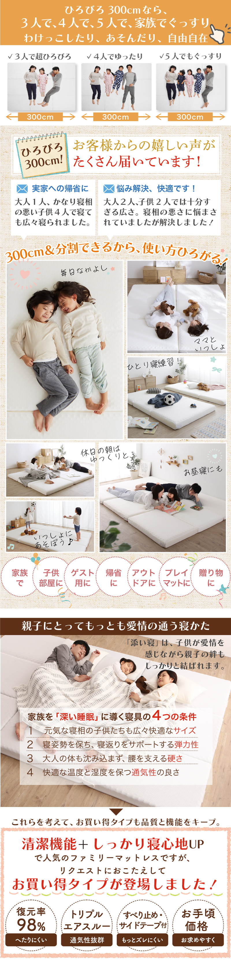 マットレス ワイドキング 連結 ファミリー 敷き布団 大きい 極厚 家族 5人 4人 3人 折りたたみ 抗菌 防臭 通気性 高反発 マットレス敷布団 幅300cm 厚さ8cm