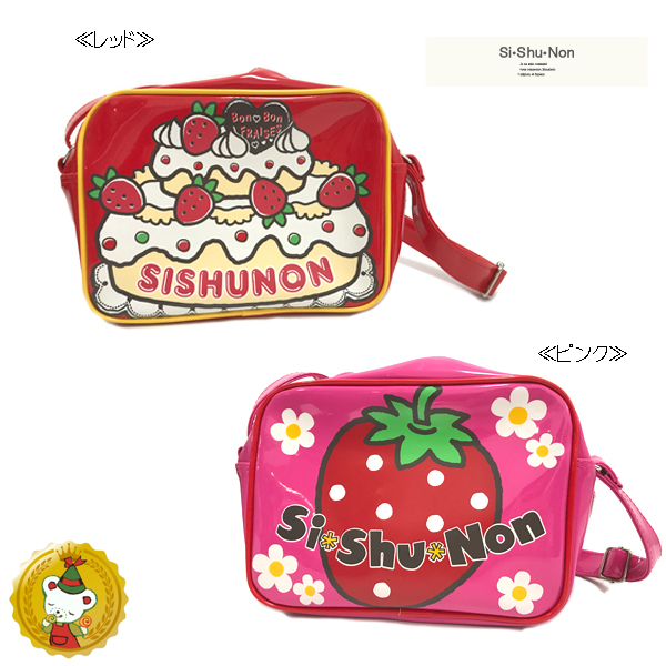 シシュノン【Si・Shu・Non】ケーキイチゴ柄エナメル 通園バッグ・幼稚園バッグ(レッド・ピンク)