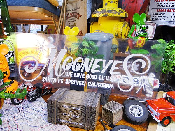 ムーンアイズと言えば、日本のピンストライパーの第一人者、ワイルドマン石井氏がいるからね!だからムーンとピンストライプアートって切っても切り離せない存在なんです。本来なら石井さんにピンストライプを入れてもらうのが最高なんだけど、そんなにお手軽にはいかないのも事実!そこで紹介したいのがこのムーンアイズからリリースされたピンストライプステッカーです。透明シートの上からこすると、キレイに文字の部分だけが残るタイプのステッカーです。デザインはもちろんワイルドマン石井氏によるオリジナル!貼りつけたその様はまるで本物のピンストライプを入れてもらったかのような雰囲気になるんです。毎日愛用してる小物からクルマ、はてはゴミ箱なんかもこのステッカーを使えばオリジナルムーンアイズグッズが作れちゃうからね!憧れのピンストライプを自由自在に使っちゃえ!(≧∀≦)/