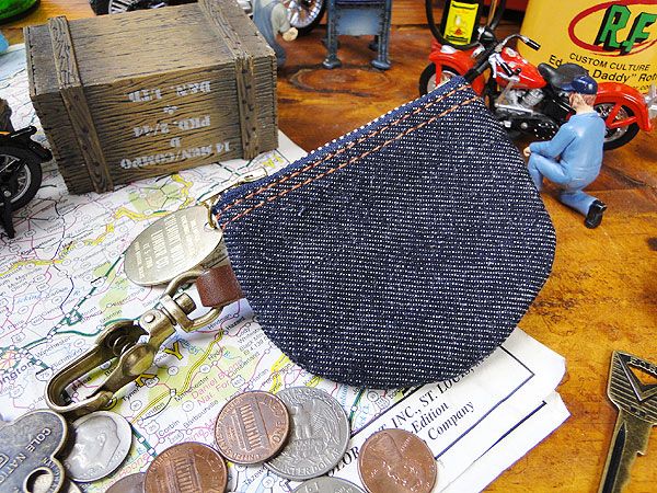 アドバタイジングデザインでアメ雑界で一躍有名になったブランド、カルチャーマートがまたまたやってくれました!今度はデニムと真ちゅうを組み合わせたアメカジ系コインポーチです。上質のデニム素材をベースに、ポケットに入れても邪魔にならないサイズでコンパクトなポーチを仕上げ、そこへカルチャーマートのキーホルダーで好評を得た工業用パーツを使った真ちゅう製のフックと、ヴィンテージメダルを思わせる真ちゅう製プレートをアクセントに入れ、さらにジッパーはアメカジ好きが好むアメリカのファスナーブランド、ユニバーサル社(現在YKKにより買収)が使われているというこだわりのコインポーチです。この小さいサイズから放たれる自信たっぷりの存在感はまさに傑作と呼べる逸品!「やっぱり違う!カルチャーマートのは違う!」アメリカ好きから支持されるブランドはボクらのツボをホントによく知ってます。( ̄ー ̄)ニヤリ☆
