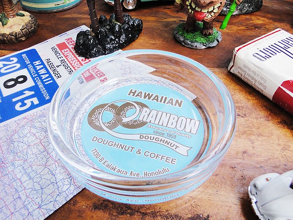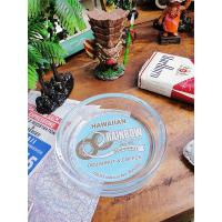 ハワイのモーテルやローカルフードショップに置いてありそうなアドバタイジング系デザインがされたガラス製の灰皿です。テーブルやデスクの上で小振りの自分専用灰皿が欲しいって時にこういうの持ってると重宝します。ちなみにこのガラスアシュトレイ、タバコを置く切り込みが入ってないから、コイントレイやアクセサリー置き場、ポケットの小物をキープしておくなんて使い方ができるのも人気の理由なんです。アンティーク風の見た目を楽しみながら、よく見ると実はハワイ絡みのデザインになってるってところがポイント!大好きなハワイがこんなところにある・・・・そんなアナタらしいオシャレなシーン作りにどうぞ!ヽ(^0^)