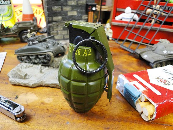 昔の戦争映画出てくるパイナップル型の手榴弾がモチーフになっていて、大きさも実寸サイズだから雰囲気がやたらリアルなの!