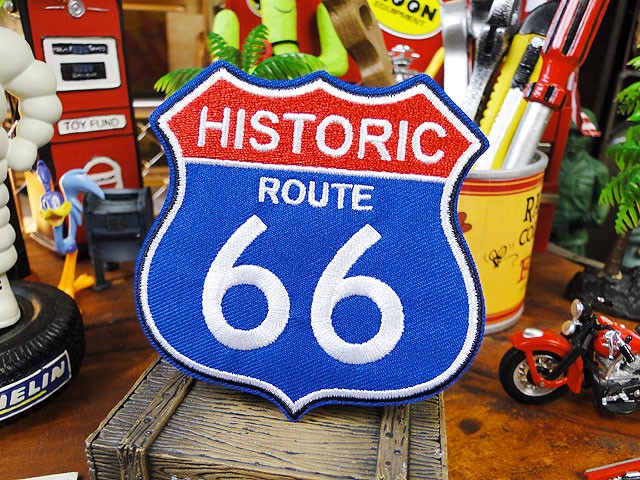 ルート66 ロードサイン型ワッペン (ブルーレッド) アメリカ雑貨 アメリカン雑貨 アイロン ファッション ロゴ ブランド ミニ