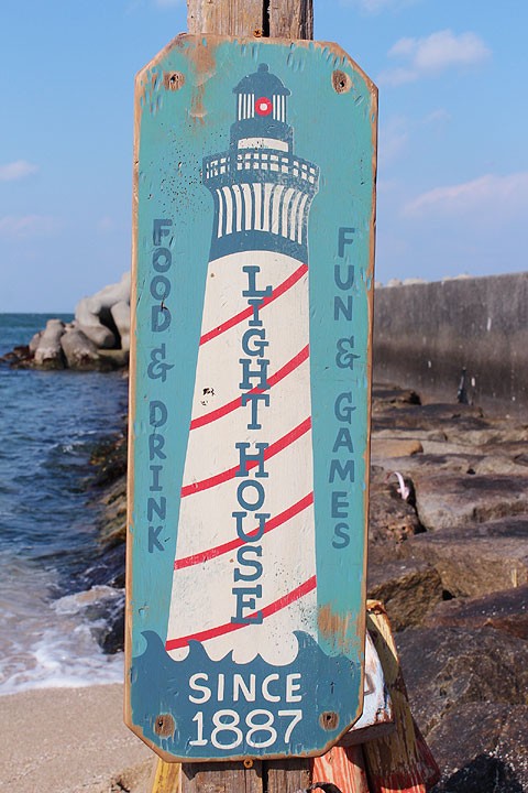 はるか昔から船乗り達の命の道しるべとしてそびえ立つ「灯台」ライトハウスをテーマにした木製看板です。