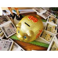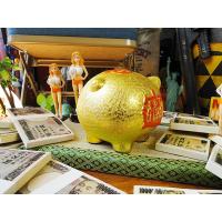 金運、財運を招くと言われる縁起の良いブタ、金のブタの貯金箱です。