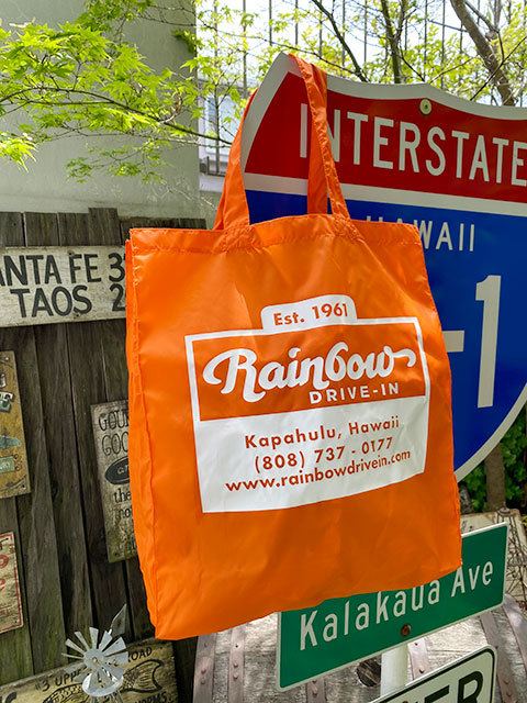 そのレインボードライブインのアドレス入りロゴがデザインされたナイロン製の可愛いトートです。