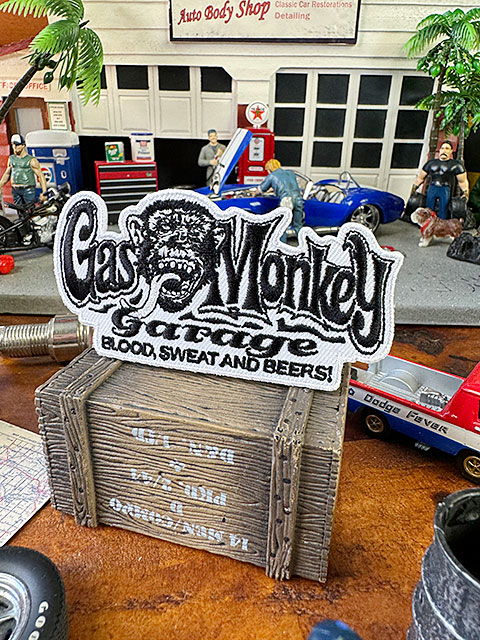 ガスモンキーガレージ ワッペン (ロゴ/ホワイト/横型) ■ アメリカン雑貨 アメリカ雑貨