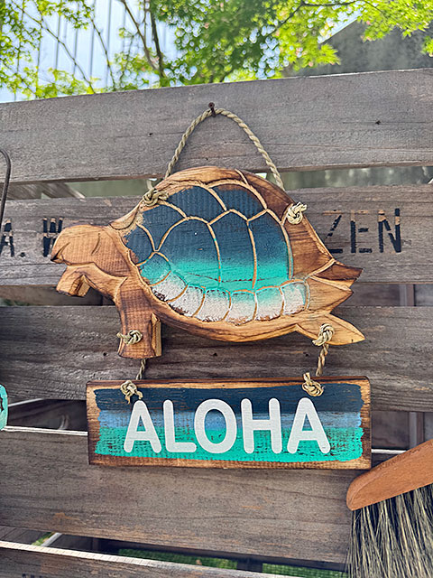 「ホヌ」を型取ったハンギングサインです。